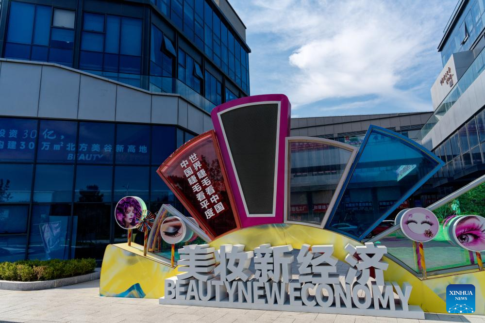 This photo taken on June 24, 2025 shows an industrial park for beauty economy in Pingdu City, Qingdao of east China's Shandong Province. Development of the false eyelash industry in Pingdu began in the 1970s. Nowadays, over 5,000 business entities and about 60,000 employees are involved in the local pillar industry. Every year, about 120 million pairs of false eyelashes produced in Pingdu are sold overseas, bringing an annual output value of about 10 billion yuan (about 1.4 billion U.S. dollars).
