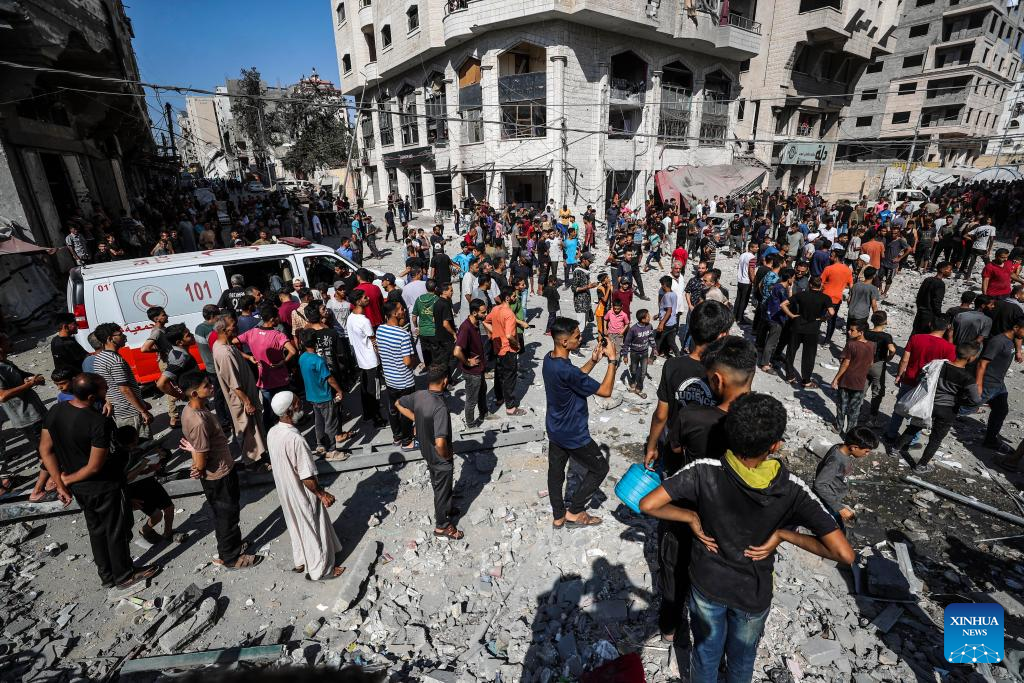 Palestinians gather at a site of an Israeli airstrike in Gaza City, on June 27, 2025. At least 40 Palestinians were killed by Israeli gunfire and shelling across the Gaza Strip on Friday, Palestinian sources said. (Photo by Rizek Abdeljawad/Xinhua)