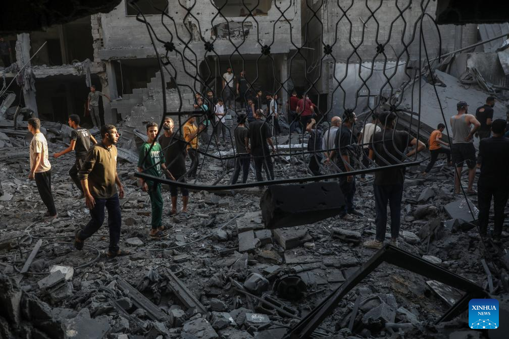 Palestinians collect items from the rubble after an Israeli airstrike in Gaza City, on June 27, 2025. At least 40 Palestinians were killed by Israeli gunfire and shelling across the Gaza Strip on Friday, Palestinian sources said. (Photo by Mahmoud Zaki/Xinhua)