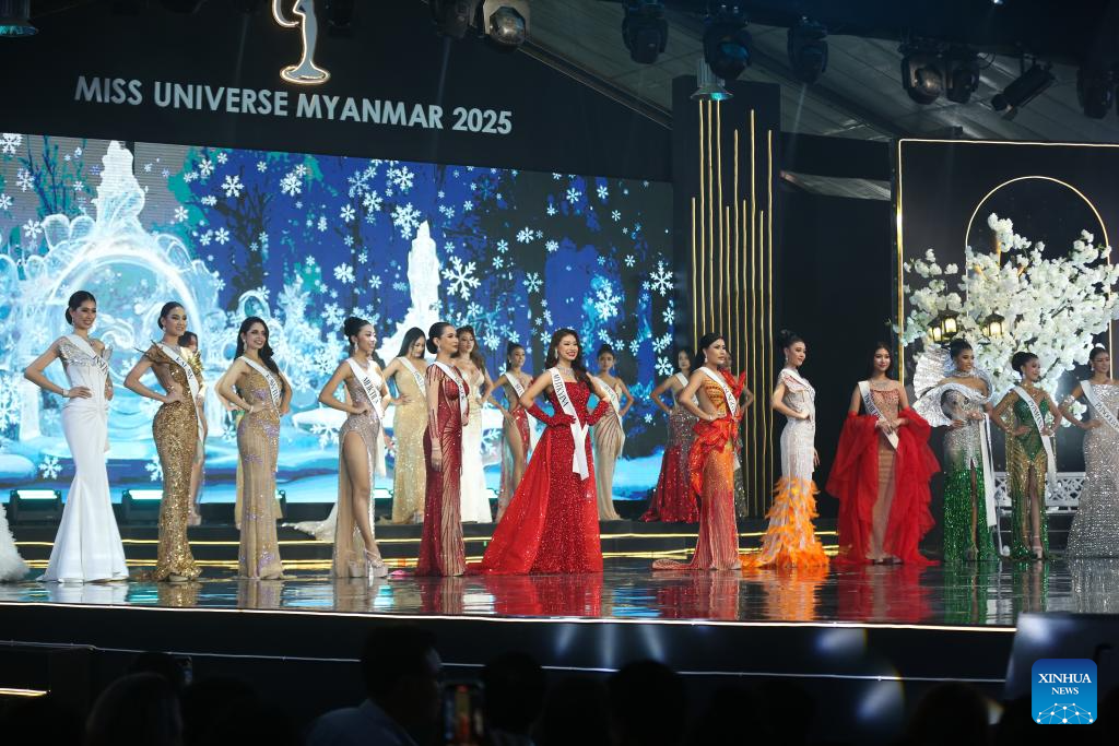 Contestants participate in the Miss Universe Myanmar 2025 in Yangon, Myanmar, June 27, 2025. The Miss Universe Myanmar 2025 finale was held in Yangon on Friday night.