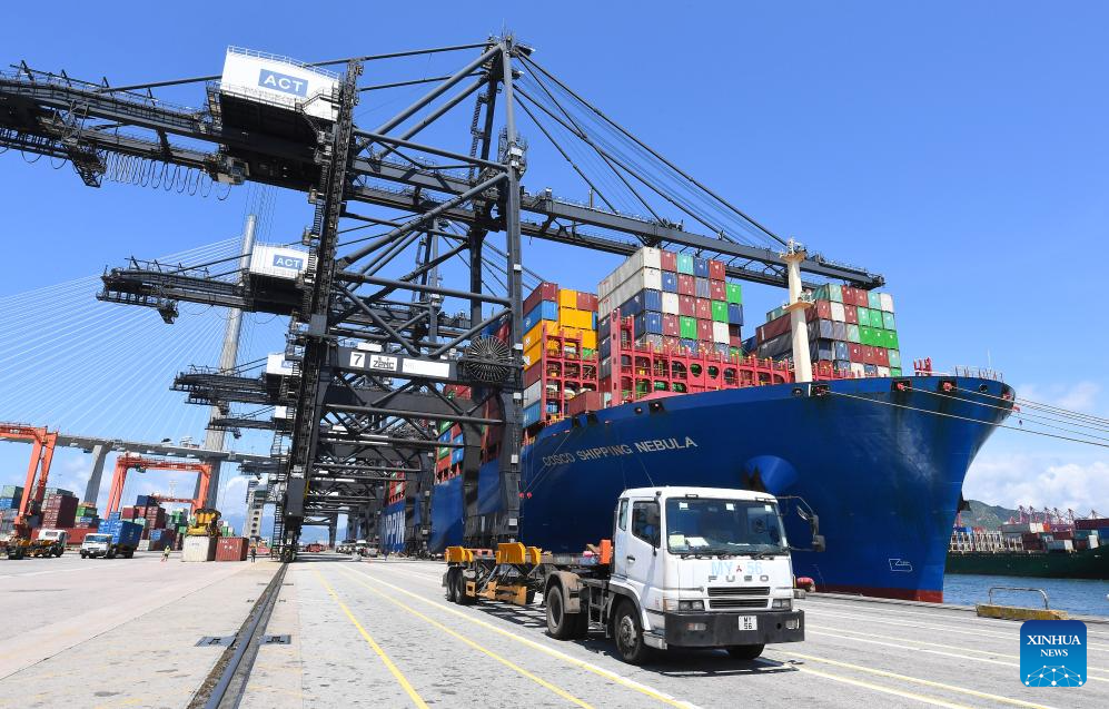 In the first five months of 2025, the value of total exports of goods increased 12.6 percent year-on-year, and the value of imports of goods rose 12.9 percent year-on-year, the Hong Kong Special Administrative Region (HKSAR) government said on Thursday. (Xinhua/Chen Duo)