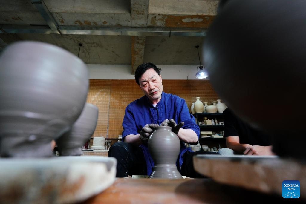 Zhang Zhizhong makes a ceramic body of a white porcelain work at Xing Klin Culture Exposition Park in Lincheng County, Xingtai, north China's Hebei Province, June 28, 2025. (Xinhua/Mu Yu)