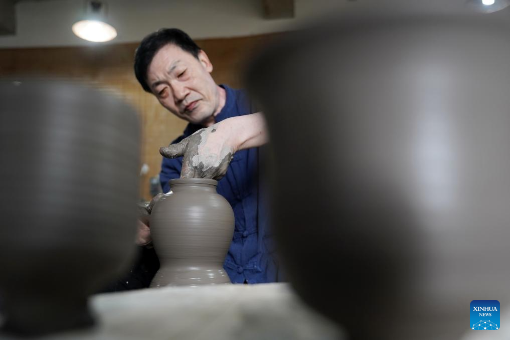 Zhang Zhizhong, 62, is an inheritor of the Xing kiln porcelain making technique. Since 1980, he has conducted systematic analysis and research on the artistic forms and craftsmanship of Xing kiln porcelain, and has produced a number of Xing kiln porcelain products. In recent years, to promote the preservation and inheritance of Xing kiln culture, Zhang has dedicated himself in passing down the making technique of Xing kiln porcelain through various means such as teaching students and publising books. (Xinhua/Mu Yu)