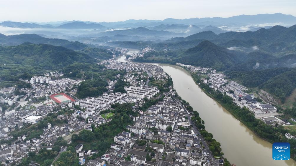 An aerial drone photo taken on June 19, 2025 shows a view in Shexian County, east China's Anhui Province. (Xinhua/Zhou Mu)