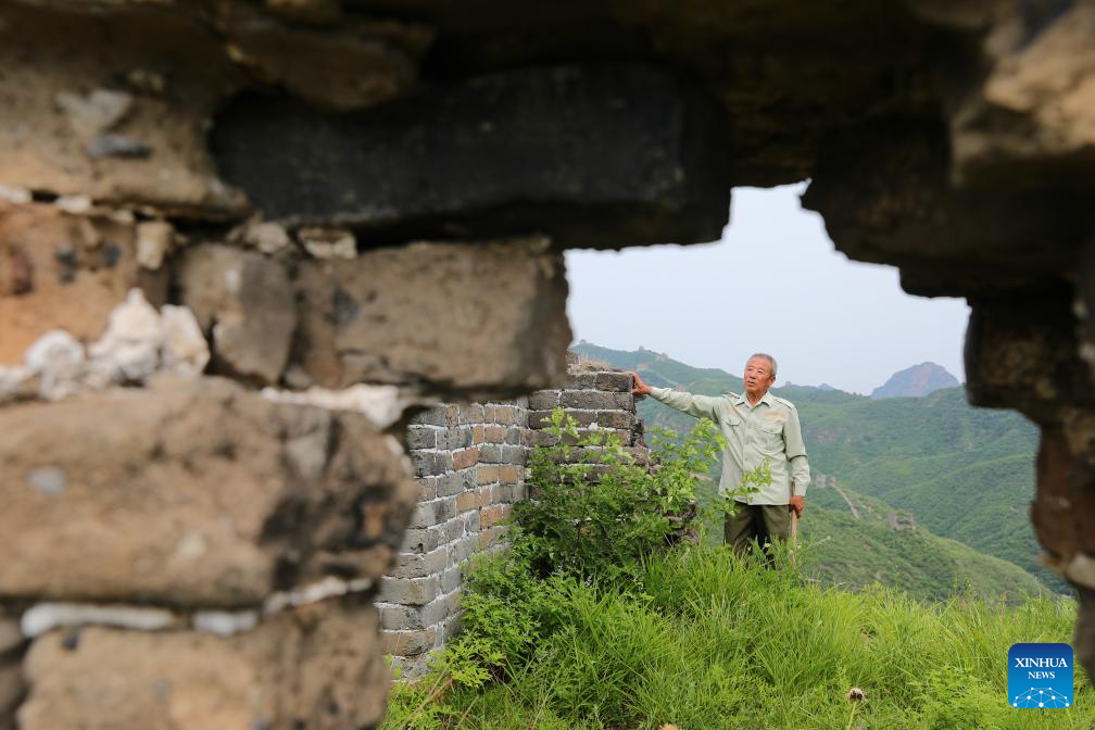 This photo taken on June 26, 2025 shows Zhang Heshan, a guard of the Great Wall, patrolling a section of the Great Wall in Qinhuangdao, north China's Hebei Province. (Photo by Cao Jianxiong/Xinhua)