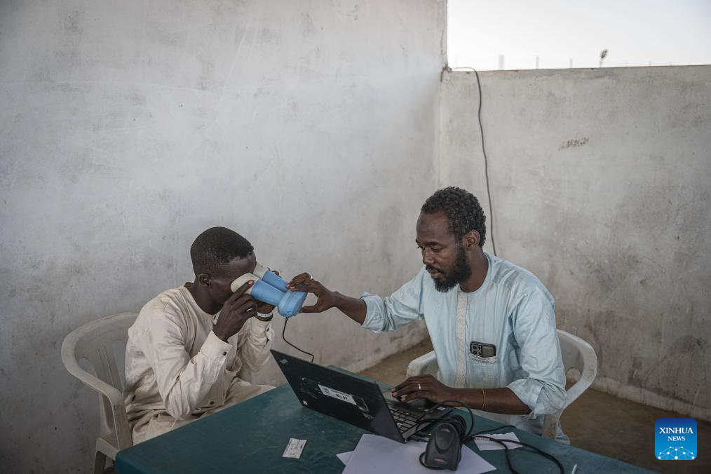 A Sudanese refugee receives iris scan registration at the UNHCR register site after entering the eastern Chadian city of Tine from North Darfur, Sudan on June 26, 2025. According to the United Nations, one in three Sudanese have been displaced. Of those, 3.8 million have crossed into neighboring countries, primarily Egypt, Chad, Ethiopia, Eritrea, and South Sudan.
