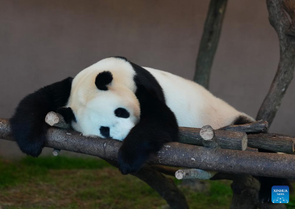 Giant panda Yuihin rests at Adventure World amusement park in Shirahama, Wakayama prefecture, Japan, June 27, 2025. (Xinhua/Jia Haocheng)