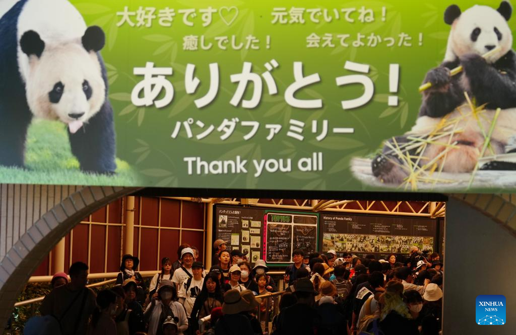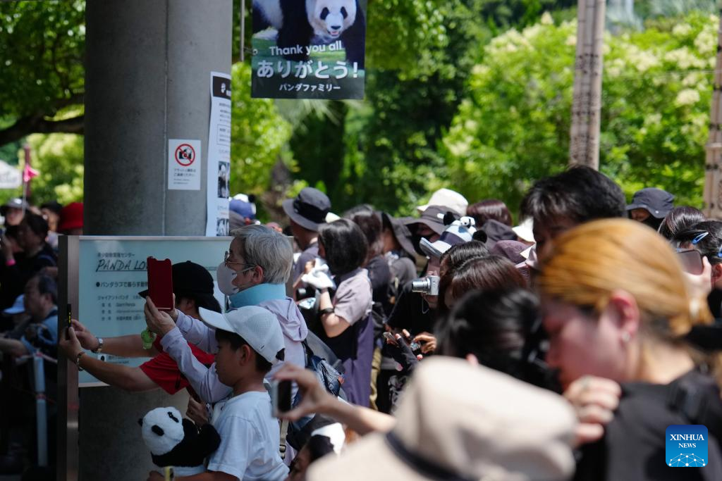 Tourists bid farewell to giant pandas on loan to Adventure World amusement park in Shirahama, Wakayama prefecture, Japan, June 27, 2025. (Xinhua/Jia Haocheng)