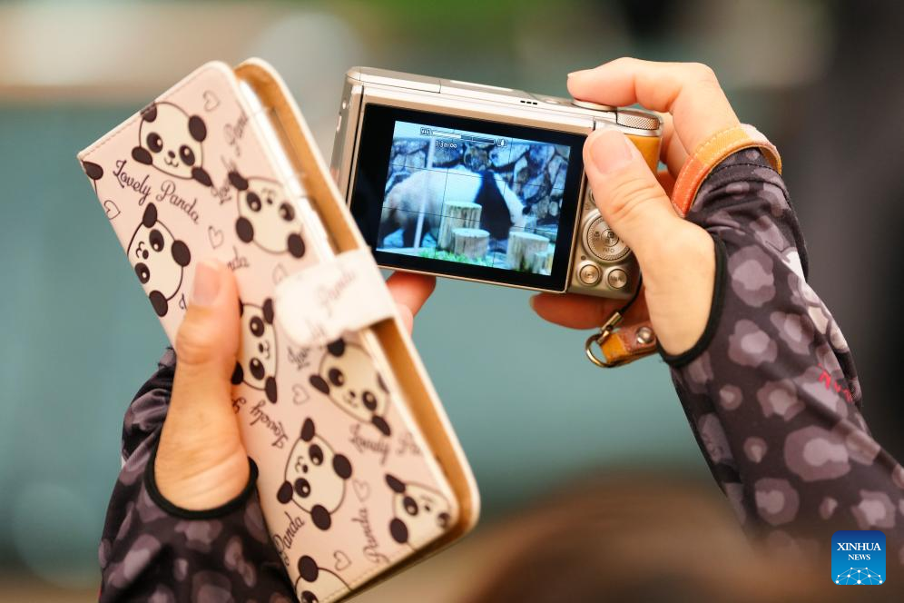 A tourist takes pictures of giant panda Rauhin at Adventure World amusement park in Shirahama, Wakayama prefecture, Japan, June 27, 2025. (Xinhua/Jia Haocheng)