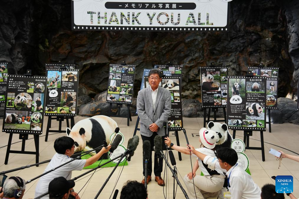 Koji Imazu, director of the Adventure World amusement park, meets the press before seeing off the pandas returning to China, at the amusement park in Shirahama, Wakayama prefecture, Japan, June 28, 2025. Four giant pandas in the western Japanese prefecture of Wakayama departed for China on Saturday.
