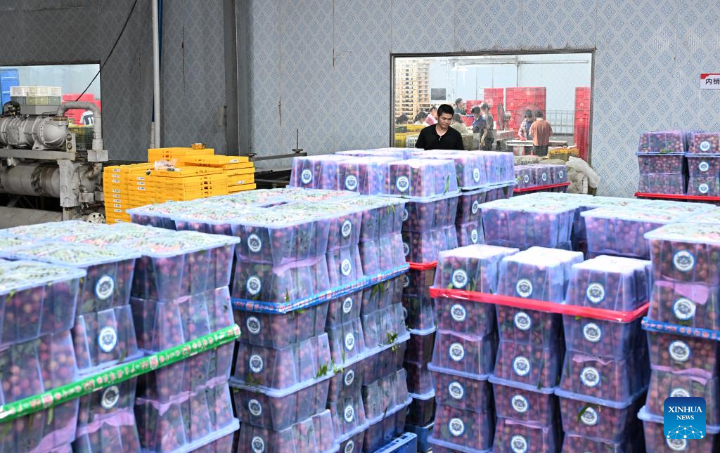 Lychees are precooled at a company in Gaozhou City, south China's Guangdong Province, June 4, 2025.