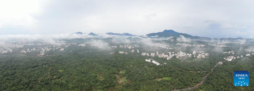This panoramic drone photo taken on May 19, 2025 shows lychee orchards in Gaozhou City, south China's Guangdong Province.