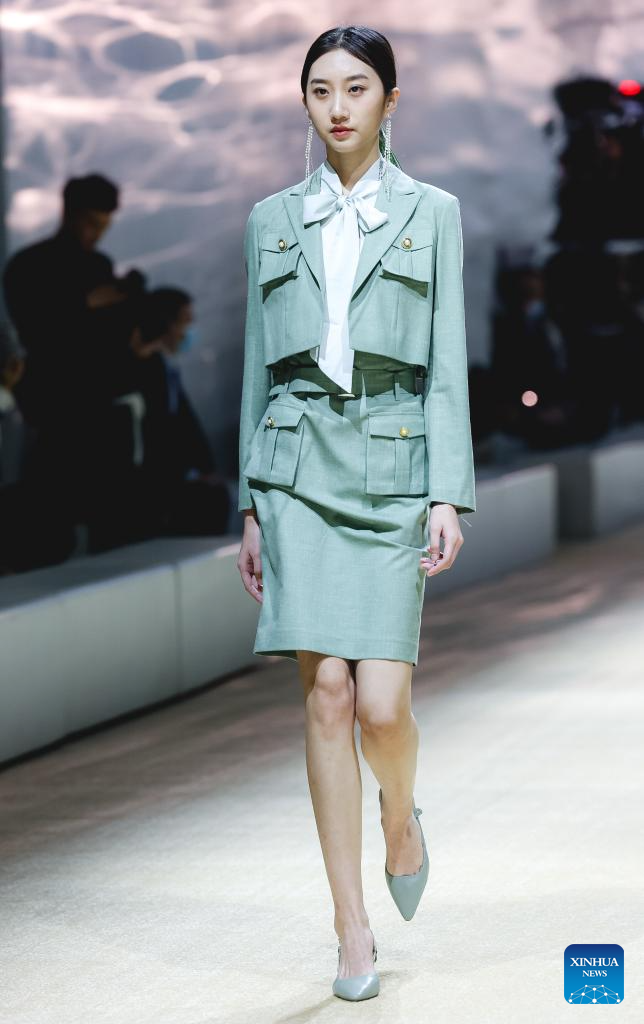 This file photo taken in 2022 shows a model presenting creations of Longqingxiang during the brand's fashion launch. (Xinhua)