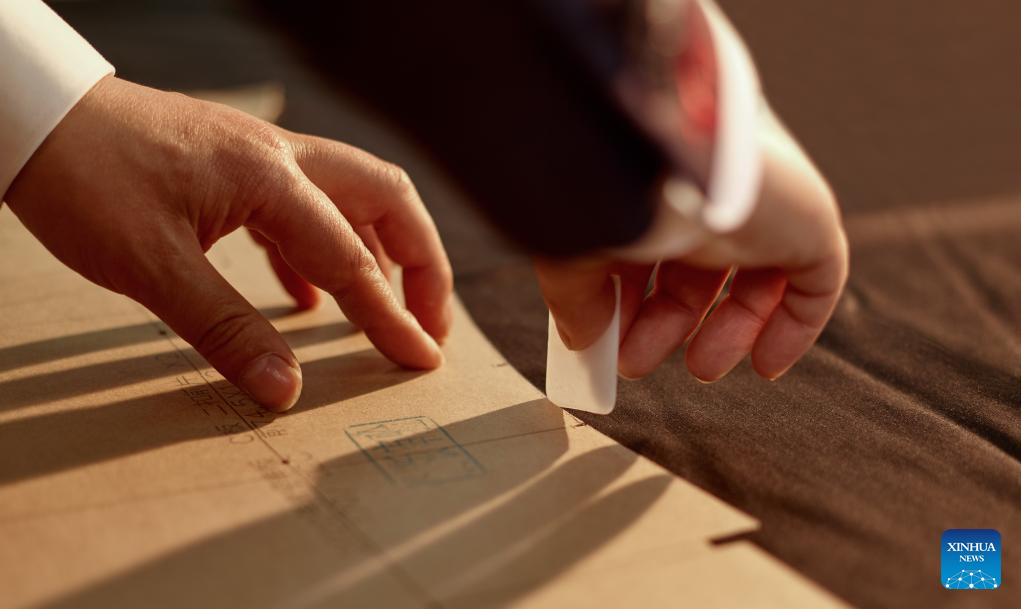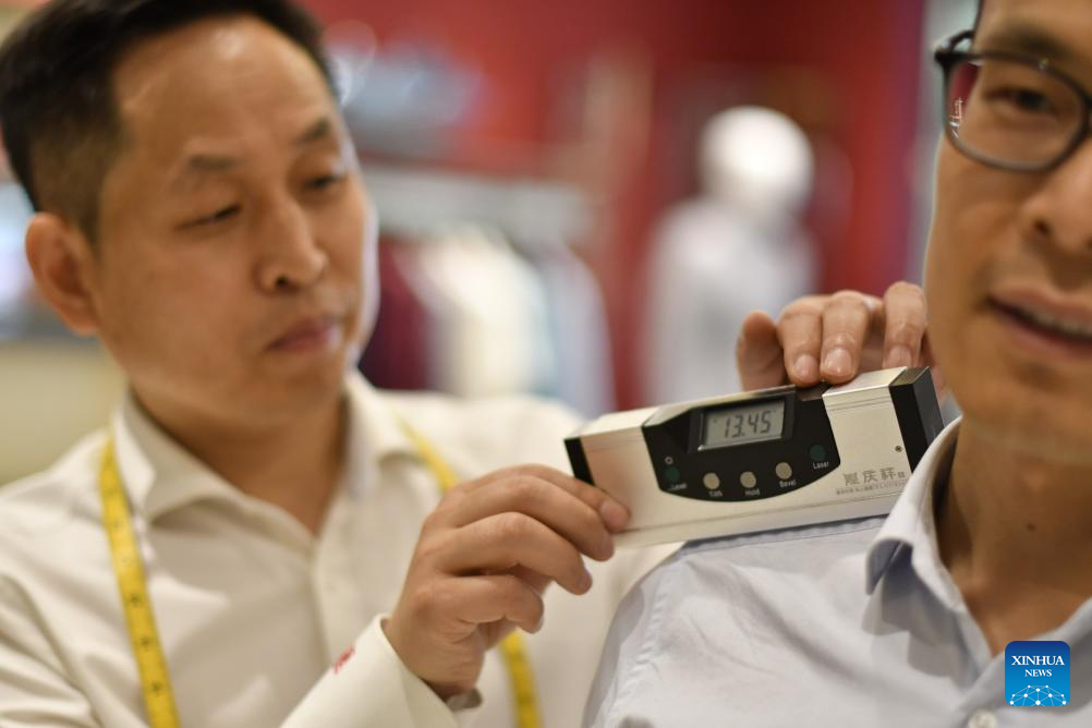 Nowadays, Longqingxiang has become a comprehensive clothes making company which offers services from designing, innovation, production to selling. It has also adopted digital technologies such as 3D in material selecting, style designing and body size measuring. Besides applying modern equipment, it keeps traditional handwork and the "27-step" body size measuring method in its clothes making. Every customized western-style clothes of Longqingxiang will go through 406 making procedures before reaching the customer. The company also owns 34 patents in outlooks and functions, opening branches across the country and receiving orders from Middle East and Southeast Asia. Every March and August, Longqingxiang holds its Spring/Summer and Autumn/Winter new products launches. On Aug. 7 of 2022, it even showcased its fashion designs on the Great Wall. Combining traditional and modern tastes, integrating Chinese and western cultures, Longqingxiang is now leading the trend of Chinese customized brand. (Xinhua/Li Xin)
