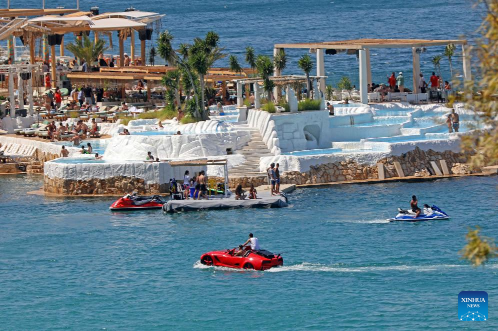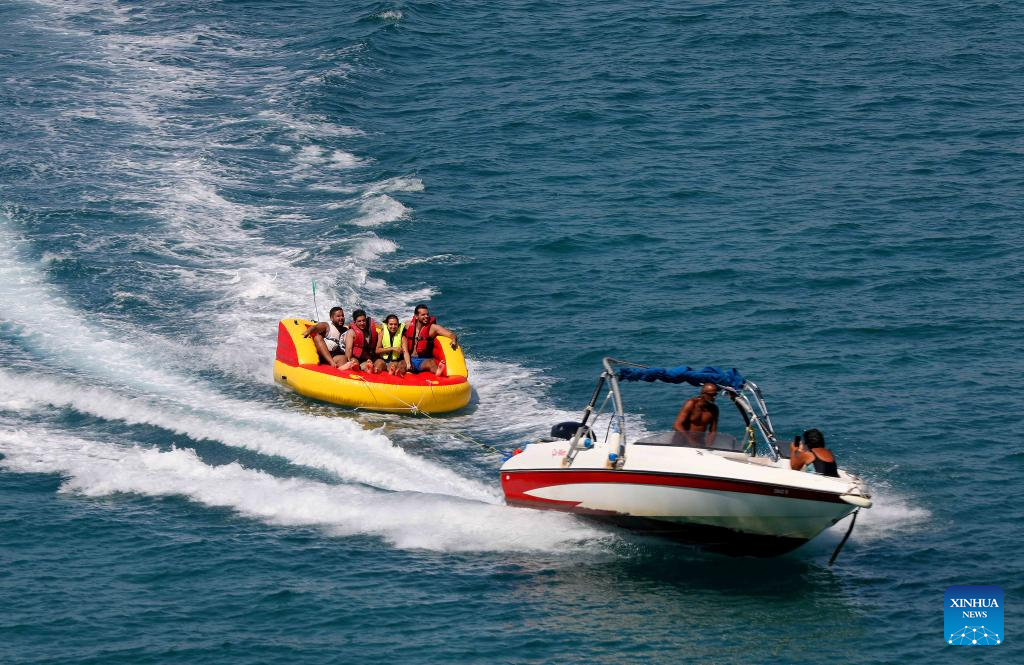 People enjoy themselves at the peak of summer in Chekka, Lebanon, June 29, 2025. (Xinhua/Bilal Jawich)