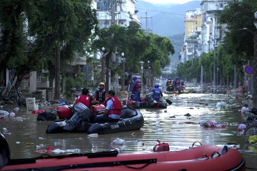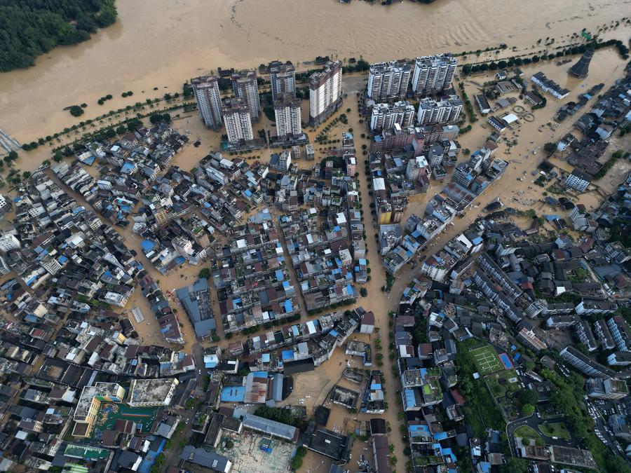 An aerial drone photo shows the flood-stricken Rongjiang County, southwest China's Guizhou Province, June 28, 2025. (Xinhua/Liu Xu)Rescuers evacuate residents in Rongjiang County, southwest China's Guizhou Province, June 28, 2025. (Xinhua/Liu Xu)An aerial drone photo shows the flood-stricken Rongjiang County, southwest China's Guizhou Province, June 28, 2025. (Xinhua/Liu Xu)Volunteers work in the flood-stricken Rongjiang County, southwest China's Guizhou Province, June 29, 2025. (Photo by Wang Bingzhen/Xinhua)■