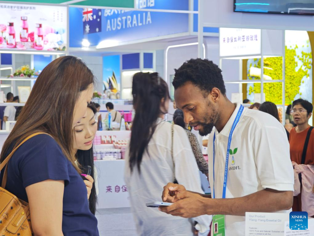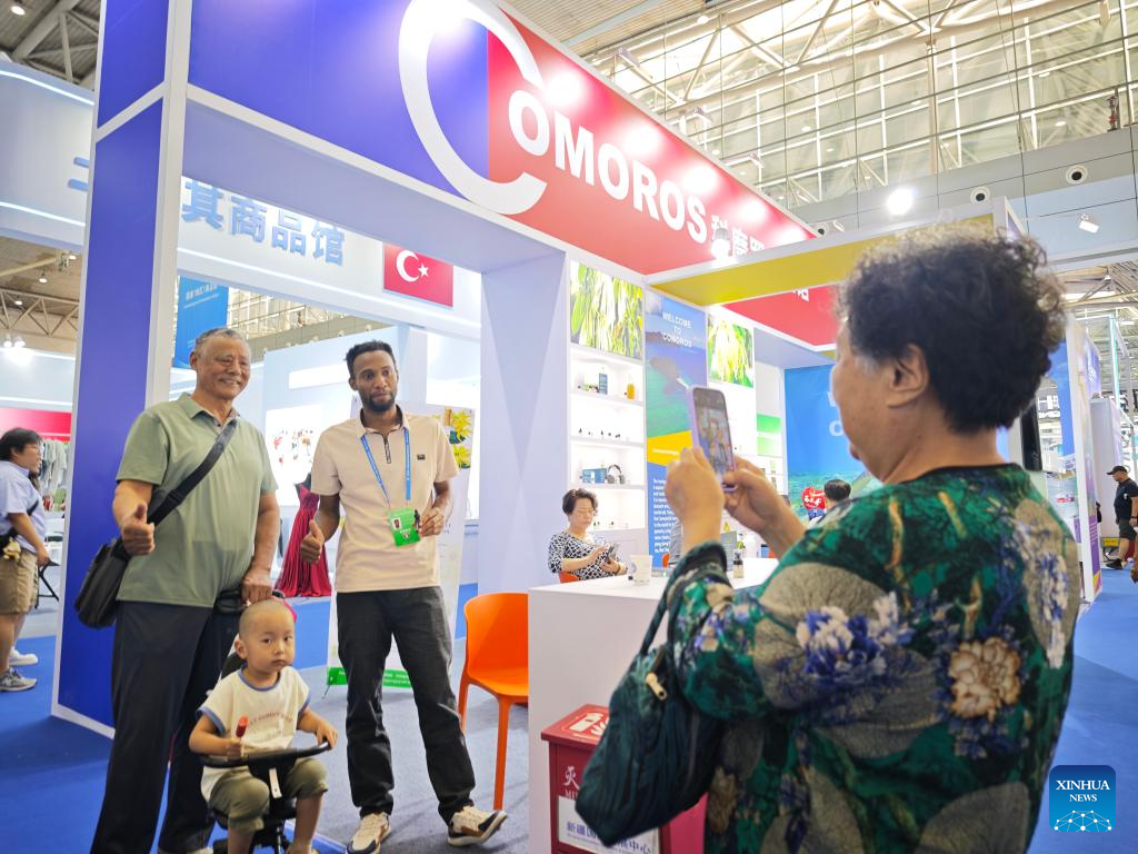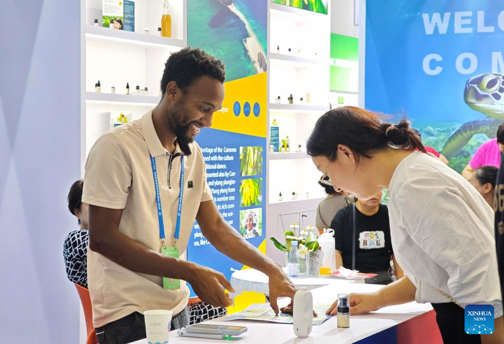 URUMQI, June 30 (Xinhua) -- At the 2025 (China) Eurasia Commodity and Trade Expo in Urumqi, capital of northwest China's Xinjiang Uygur Autonomous Region, 28-year-old Abdallah Daniel Abdallah greets visitors in fluent Mandarin at a pavilion filled with the tropical scent of ylang-ylang flowers, proudly showcasing essential oils from his island homeland.