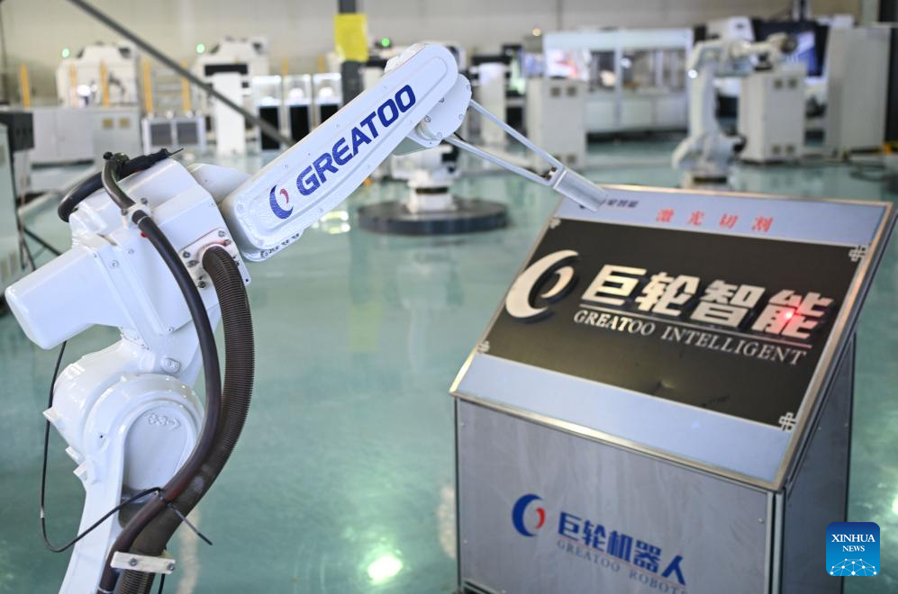 This photo taken on June 29, 2025 shows a laser cutting robot at Greatoo Intelligent in Jieyang, south China's Guangdong Province.