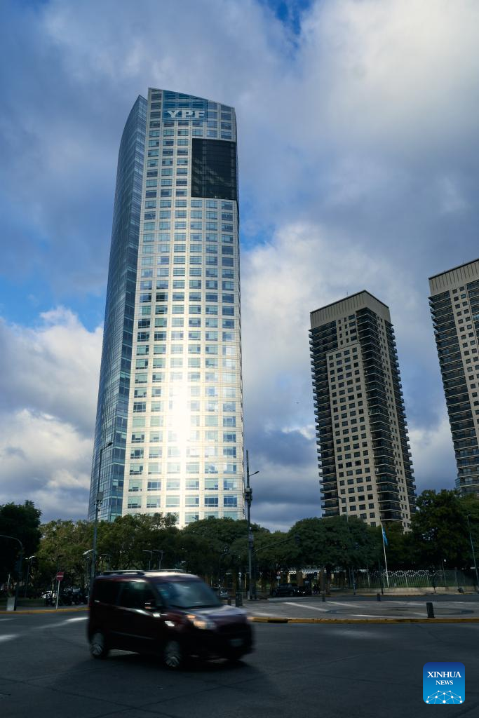This photo taken on June 30, 2025 shows the YPF Tower in Buenos Aires, Argentina. Argentina will appeal the ruling of a court in New York that ordered the South American country to transfer 51 percent of the shares of the national oil and gas company YPF, said President Javier Milei Monday.