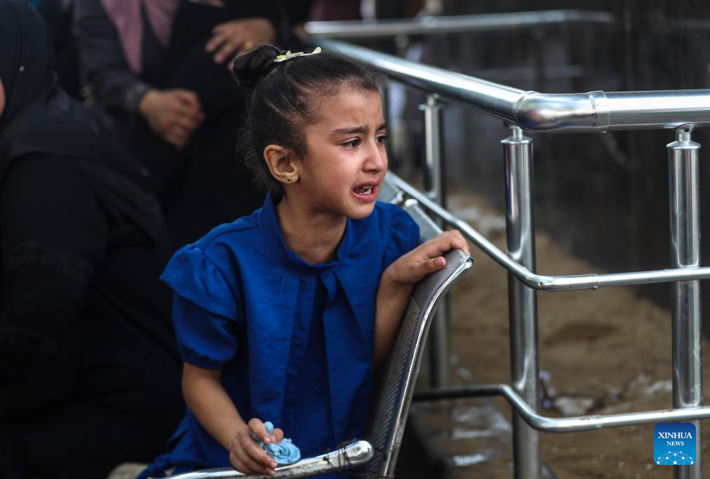 A Palestinian mourns over victims who were killed in Israeli airstrikes, at a hospital in Gaza City, July 1, 2025. At least 45 Palestinians were killed by Israeli shelling and gunfire in the Gaza Strip on Tuesday, Gaza's Civil Defense said, while the Israeli army announced that it had attacked 140 targets in the coastal enclave over the past 24 hours. (Photo by Mahmoud Zaki/Xinhua)