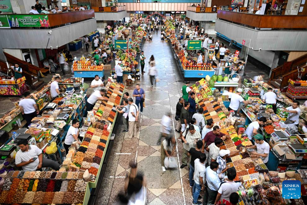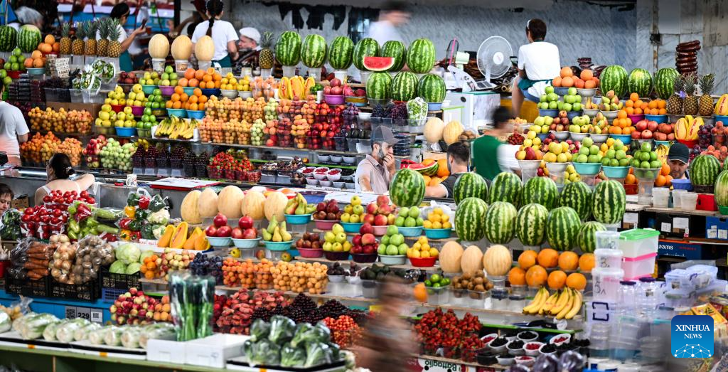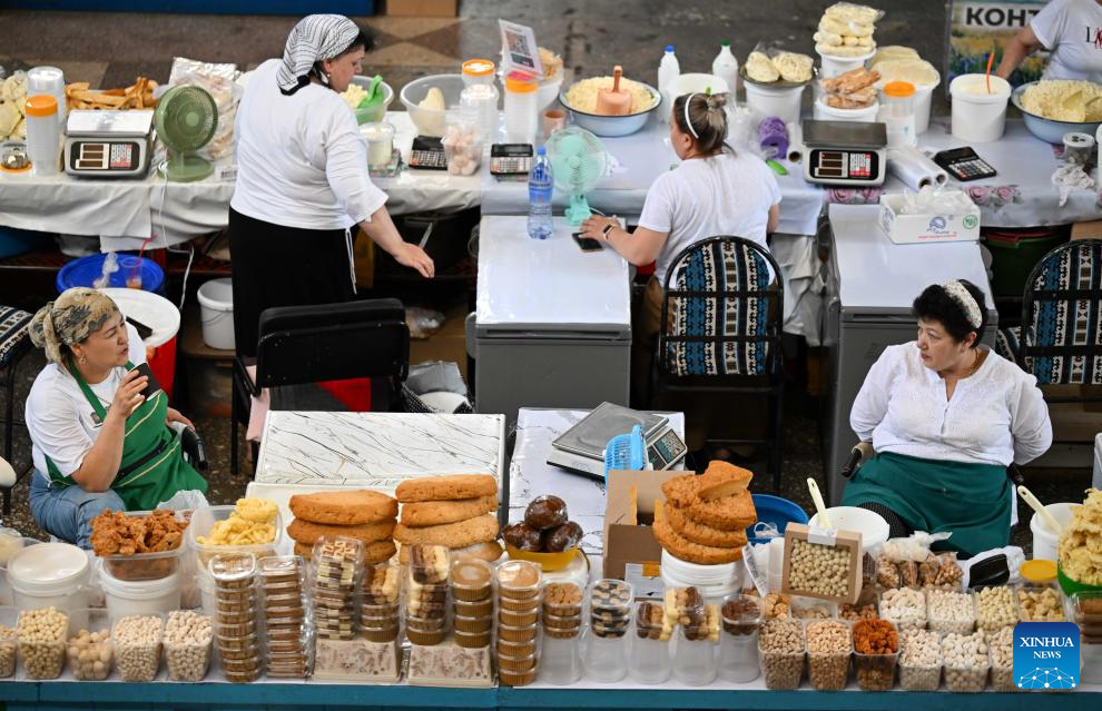 This photo taken on July 2, 2025 shows the Green Bazaar in Almaty, Kazakhstan. Green Bazaar, one of the most important markets in Almaty, is a well-known marketplace not only in Kazakhstan, but also across Central Asia. (Xinhua/Li Renzi)