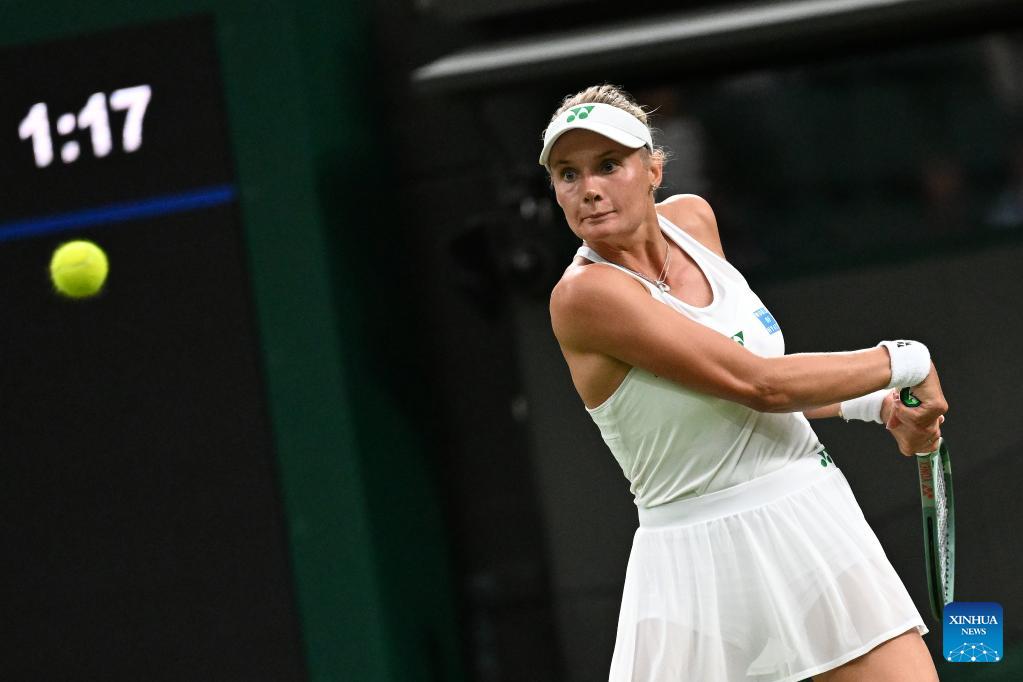 Dayana Yastremska competes during the women's singles first round match between Coco Gauff of the United States and Dayana Yastremska of Ukraine at the Wimbledon Tennis Championships in London, Britain, July 1, 2025. (Xinhua/Zhao Dingzhe)