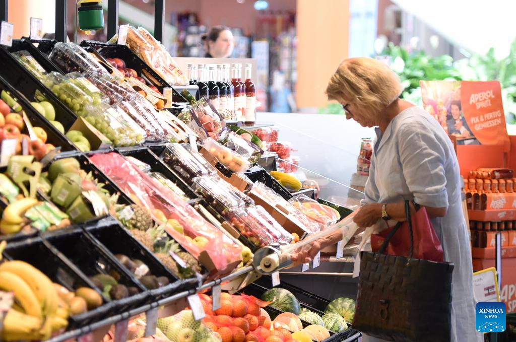 A customer shops at a supermarket in Vienna, Austria, July 2, 2025. Austria's inflation rate in June is expected to reach 3.3 percent, the highest level since May 2024, according to a flash estimate released Tuesday by Statistics Austria. (Xinhua/He Canling)