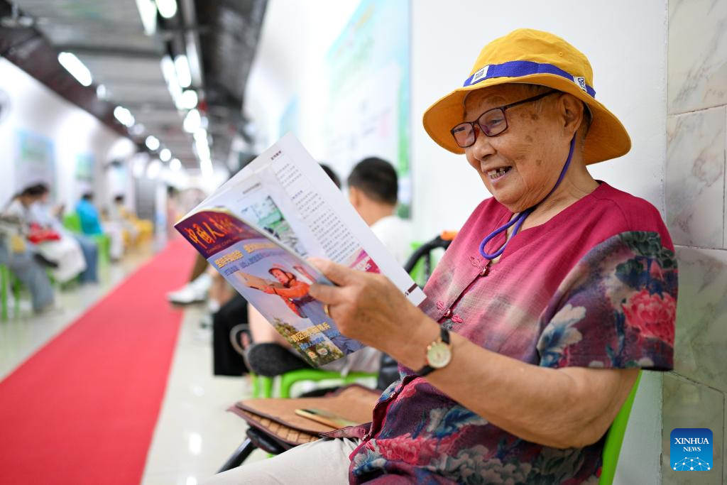 A citizen reads in an air-raid shelter in Nanjing, east China's Jiangsu Province, July 2, 2025. Due to hot weather this summer, Nanjing has opened 22 air-raid shelters for free, providing local residents with various social and leisure services. (Photo by Fang Dongxu/Xinhua)