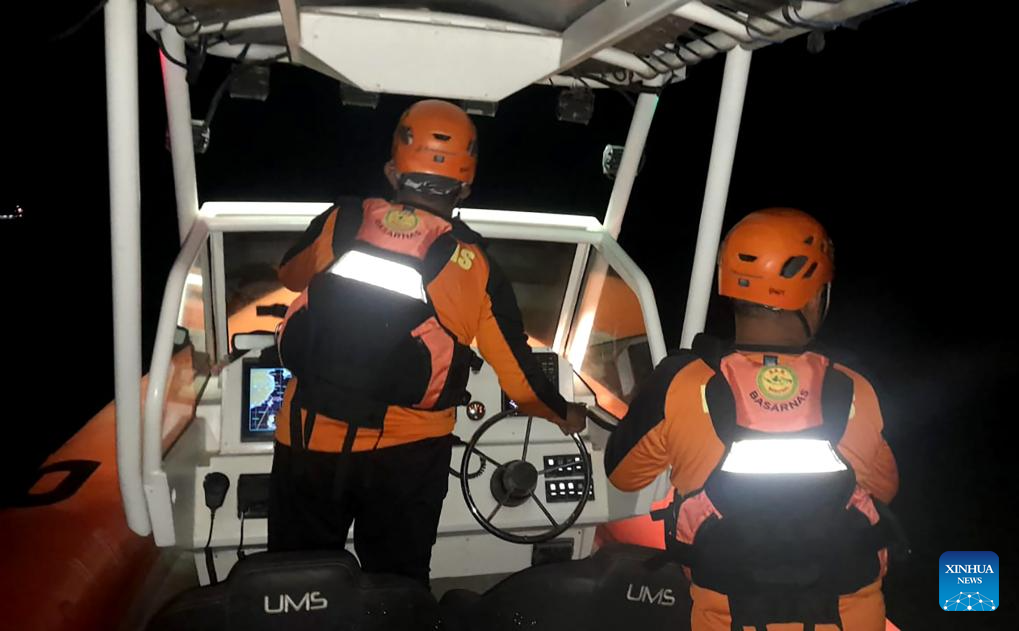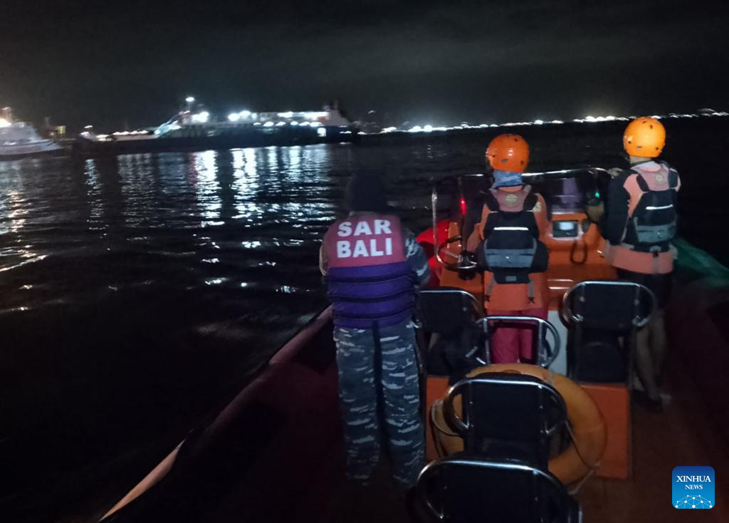 Rescuers search for missing passengers of a ship capsizing near Bali Island, Indonesia, July 3, 2025. (National Search and Rescue Agency of Indonesia/Handout via Xinhua)