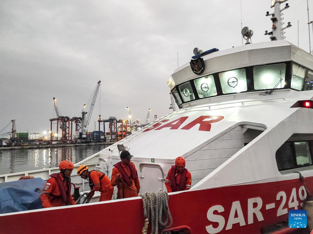 Members of Search And Rescue (SAR) teams depart for search and rescue mission from Tanjung Perak port in Surabaya, East Java, Indonesia, July 3, 2025. (National Search and Rescue Agency of Indonesia/Handout via Xinhua)