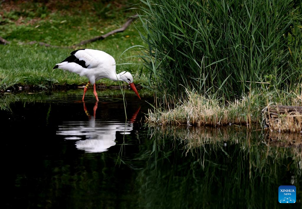 This photo taken on June 20, 2025 shows a white stork at London Wetland Centre in London, Britain. As an important part of the world's ecosystem, wetland plays a huge role in many aspects including ecology, environment, economy and society. (Xinhua/Li Ying)