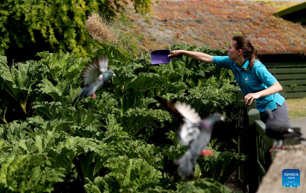 A staff member feeds birds at London Wetland Centre in London, Britain, June 20, 2025. As an important part of the world's ecosystem, wetland plays a huge role in many aspects including ecology, environment, economy and society. (Xinhua/Li Ying)