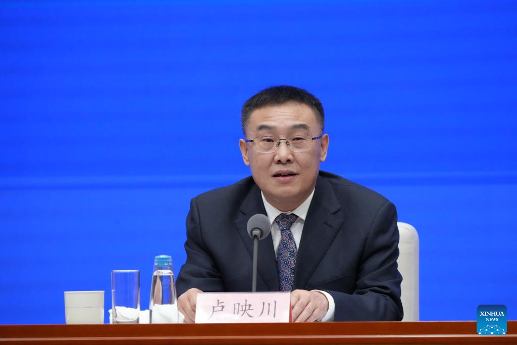 Vice Minister of Culture and Tourism Lu Yingchuan speaks at a press conference held by China's State Council Information Office on an array of cultural events marking the 80th anniversary of the victory in the Chinese People's War of Resistance Against Japanese Aggression and the World Anti-Fascist War, in Beijing, capital of China, July 3, 2025. Vice Minister of Culture and Tourism Lu Yingchuan, Vice Minister of the National Radio and Television Administration Liu Jianguo (not in the picture), Vice President of the China Media Group Wang Xiaozhen (not in the picture), and President of the Museum of the War of Chinese People's Resistance Against Japanese Aggression Luo Cunkang (not in the picture) briefed the media on a themed exhibition, the release of outstanding literary and artistic works, and other related events, and took questions from reporters. (Xinhua/Cai Yang)