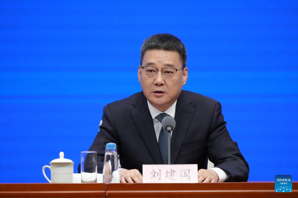 Vice Minister of the National Radio and Television Administration Liu Jianguo speaks at a press conference held by China's State Council Information Office on an array of cultural events marking the 80th anniversary of the victory in the Chinese People's War of Resistance Against Japanese Aggression and the World Anti-Fascist War, in Beijing, capital of China, July 3, 2025. Vice Minister of Culture and Tourism Lu Yingchuan (not in the picture), Vice Minister of the National Radio and Television Administration Liu Jianguo, Vice President of the China Media Group Wang Xiaozhen (not in the picture), and President of the Museum of the War of Chinese People's Resistance Against Japanese Aggression Luo Cunkang (not in the picture) briefed the media on a themed exhibition, the release of outstanding literary and artistic works, and other related events, and took questions from reporters. (Xinhua/Cai Yang)