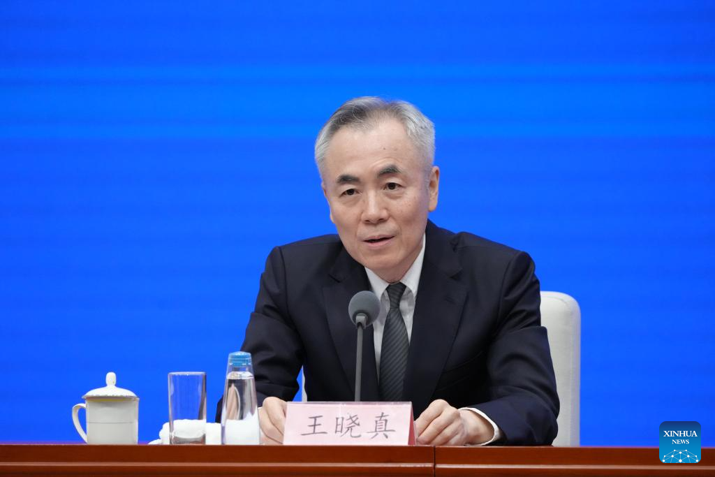 Vice President of the China Media Group Wang Xiaozhen speaks at a press conference held by China's State Council Information Office on an array of cultural events marking the 80th anniversary of the victory in the Chinese People's War of Resistance Against Japanese Aggression and the World Anti-Fascist War, in Beijing, capital of China, July 3, 2025. Vice Minister of Culture and Tourism Lu Yingchuan (not in the picture), Vice Minister of the National Radio and Television Administration Liu Jianguo (not in the picture), Vice President of the China Media Group Wang Xiaozhen, and President of the Museum of the War of Chinese People's Resistance Against Japanese Aggression Luo Cunkang (not in the picture) briefed the media on a themed exhibition, the release of outstanding literary and artistic works, and other related events, and took questions from reporters. (Xinhua/Cai Yang)