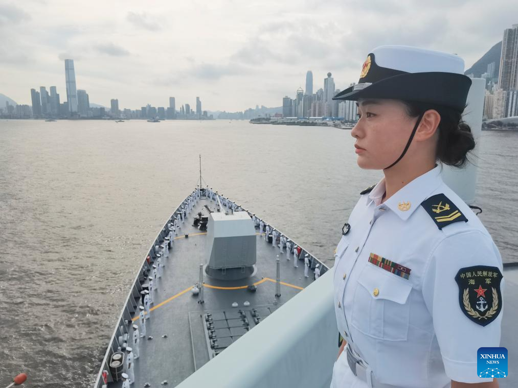 HONG KONG, July 3 (Xinhua) -- A fleet of the Chinese People's Liberation Army Navy led by the aircraft carrier Shandong arrived in the Hong Kong Special Administrative Region on Thursday morning. ■