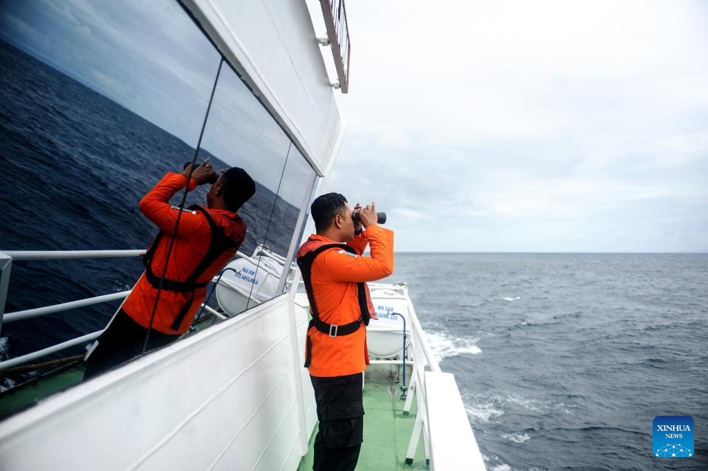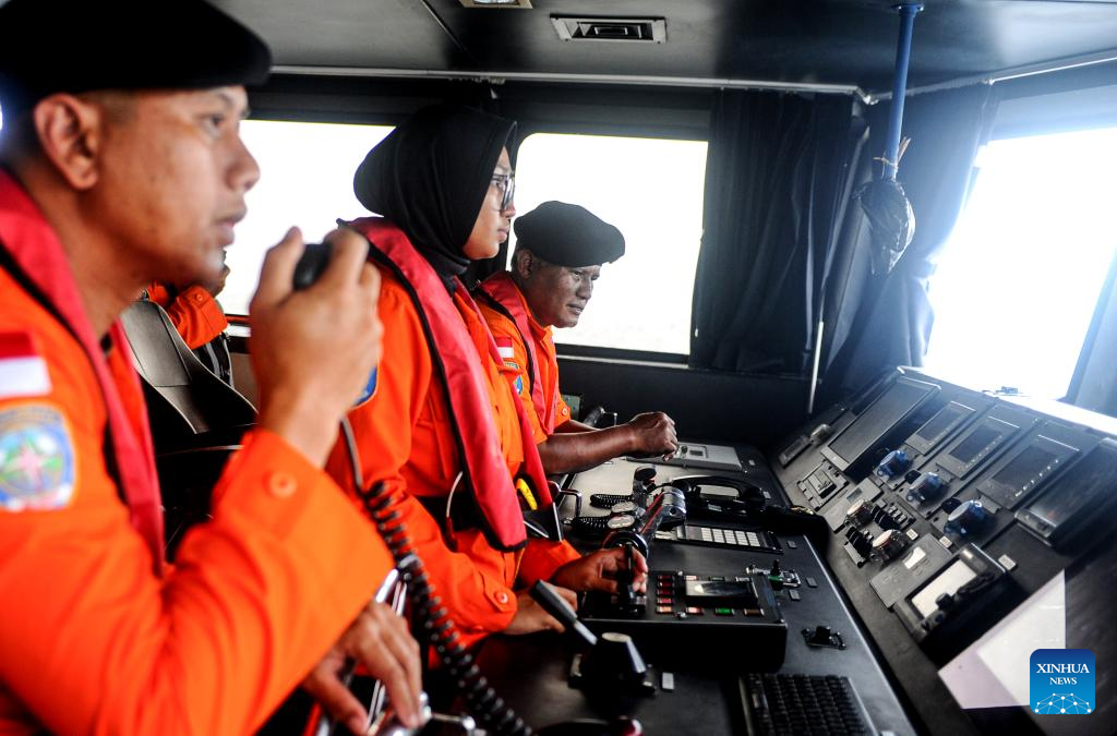 Rescuers in operation are pictured aboard a boat in waters near East Java, Indonesia, July 4, 2025. Six people were confirmed dead, 24 remain missing and 35 others have survived after a passenger ship sank in Indonesia's Bali Strait on Wednesday night, according to Gusti Ayu Ketut Wijayanti, spokesperson for the Search and Rescue Office in Bali. The ship carried 53 passengers, 12 crew members, and a dozen vehicles. (National Search and Rescue Agency of Indonesia/Handout via Xinhua)