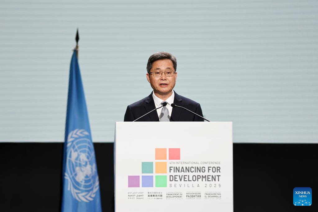 Chinese President Xi Jinping's Special Envoy and Minister of Finance Lan Fo'an delivers a speech at the United Nations Fourth International Conference on Financing for Development in Seville, Spain, on July 1, 2025. (Xinhua/Li Jing)