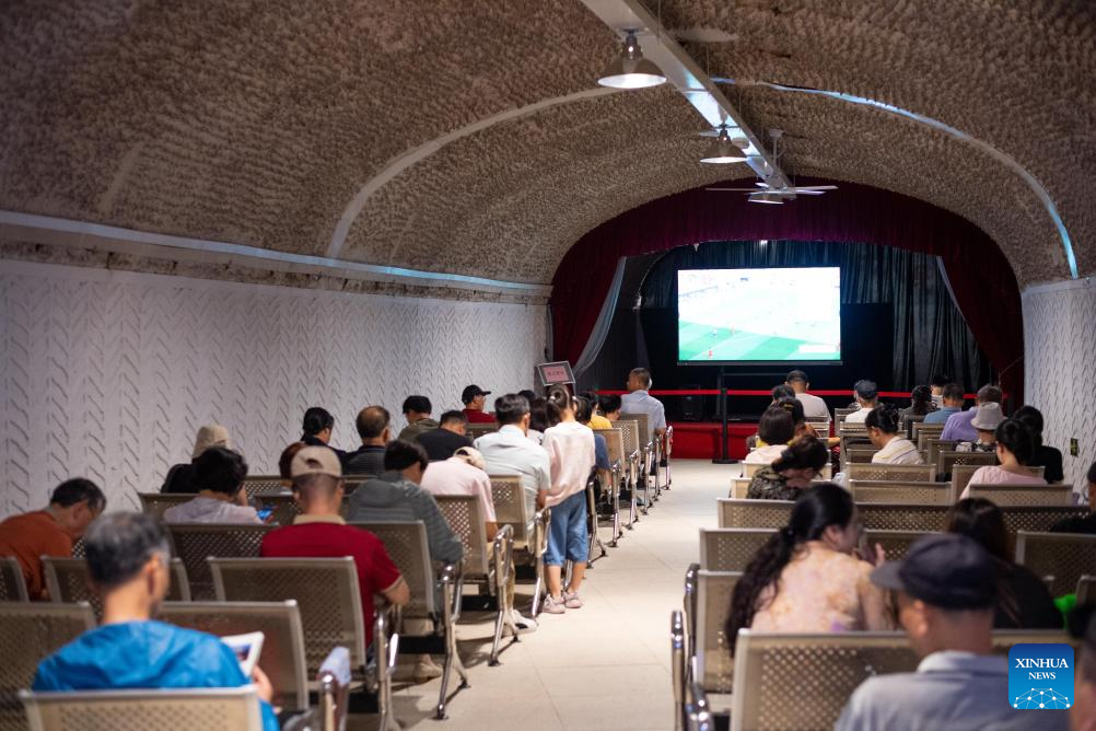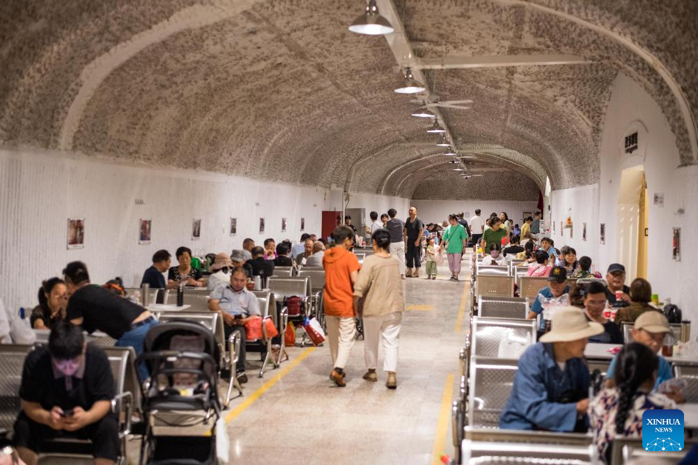 Residents cool off at an air-raid shelter in Hangzhou, east China's Zhejiang Province, July 3, 2025. Starting from July 1, the city's cooling centers transformed from air-raid shelters were open to the public free of charge for two months. Hangzhou issued an orange heat alert on Thursday. (Xinhua/Jiang Han)