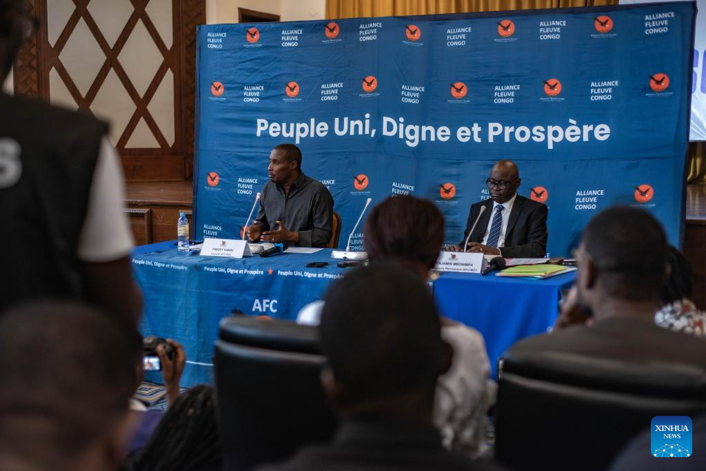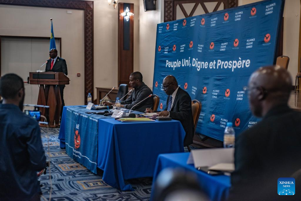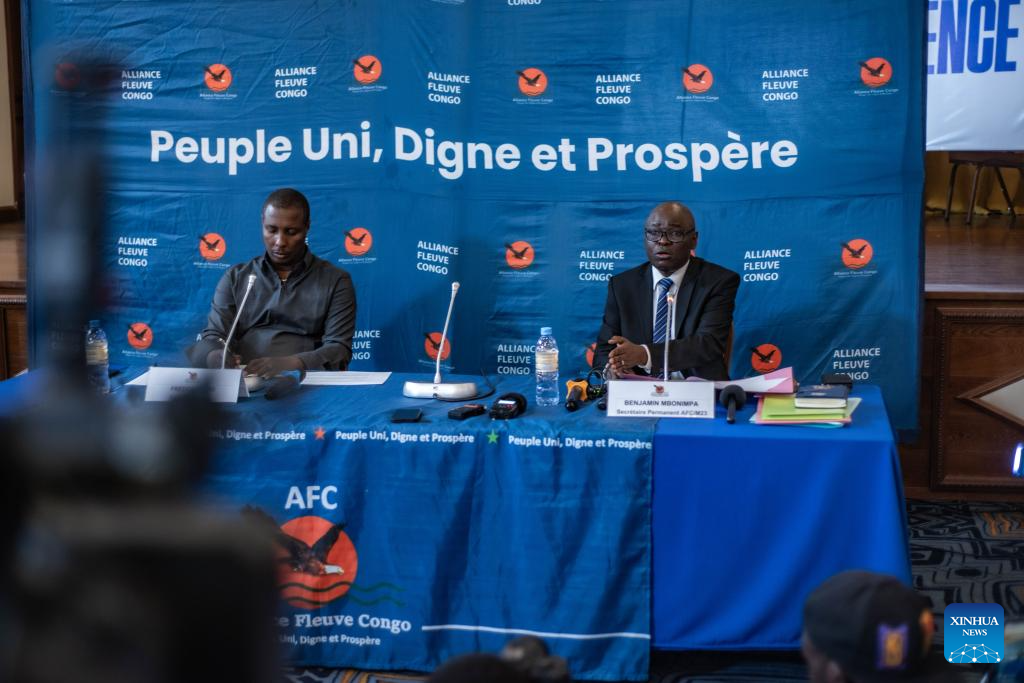 Officials of the Congo River Alliance (AFC) attend a press conference in Goma, the capital of North Kivu Province, eastern Democratic Republic of the Congo, on July 3, 2025. A new round of talks between the Democratic Republic of the Congo (DRC) government and the March 23 Movement (M23) rebel group is expected to unfold soon in Doha, the capital of Qatar, a senior official of the Congo River Alliance (AFC), a politico-military coalition allied with the M23, said on Thursday. (Photo by Zanem Nety Zaidi/Xinhua)
