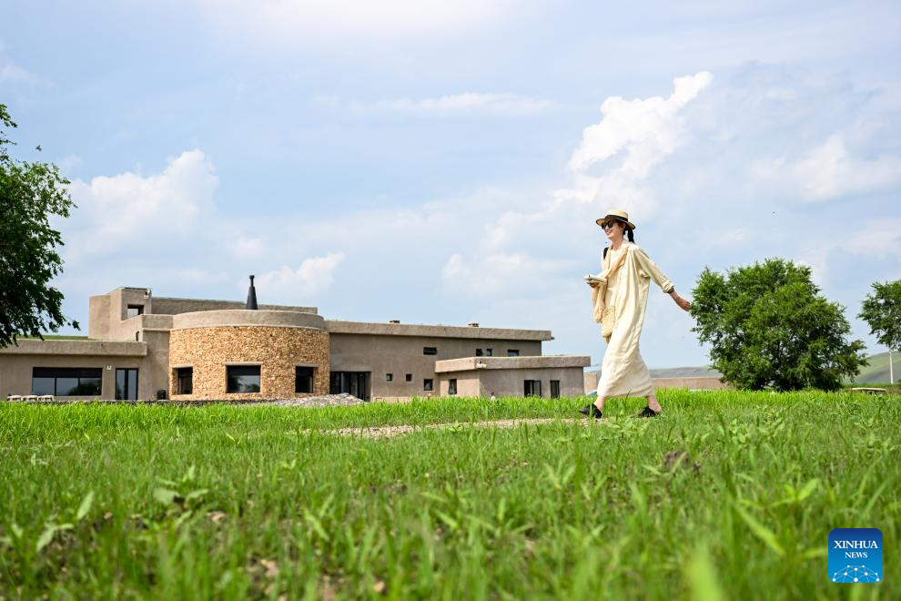 A tourist enjoys the scenery of the Wulanmaodu pasture in Horqin Right Wing Front Banner, Hinggan League, north China's Inner Mongolia Autonomous Region, July 4, 2025. In the first half of this year, the banner recorded 2.55 million tourist trips, with total tourism expenditure reaching 882 million yuan (about 123.12 million U.S. dollars). (Xinhua/Bei He)