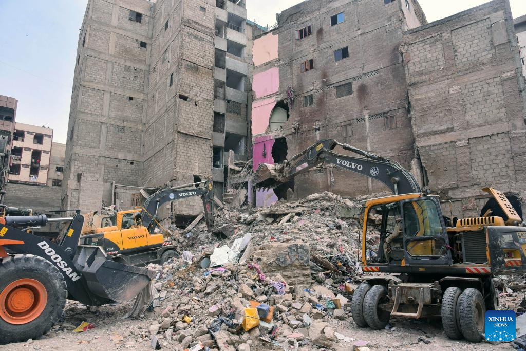 ISLAMABAD, July 5 (Xinhua) -- The death toll from the collapse of a residential building in Pakistan's southern port city of Karachi rose to 17 as more bodies were recovered from the debris, a spokesperson of the state-owned rescue organization Rescue 1122 told Xinhua on Saturday morning.