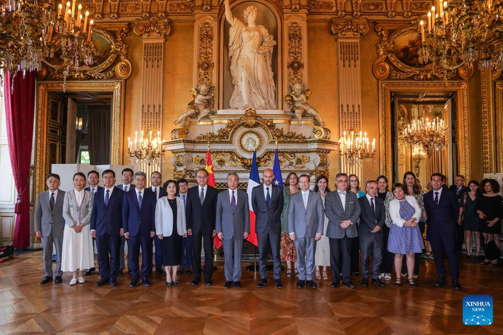 PARIS, July 5 (Xinhua) -- China and France should continuously deepen people-to-people exchanges, set a model for civilizational exchanges between China and Europe as well as across the world, and facilitate the building of a community with a shared future for mankind, Chinese Foreign Minister Wang Yi said Friday.