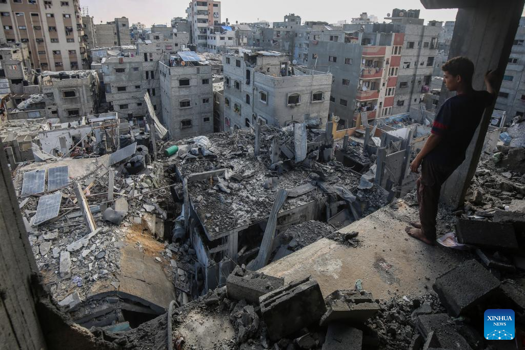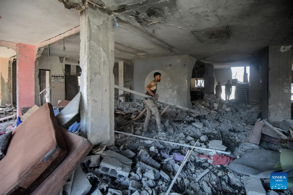 Palestinians inspect a destroyed house after an Israeli airstrike in the al-Shati refugee camp, west of Gaza City, on July 4, 2025. (Photo by Rizek Abdeljawad/Xinhua)