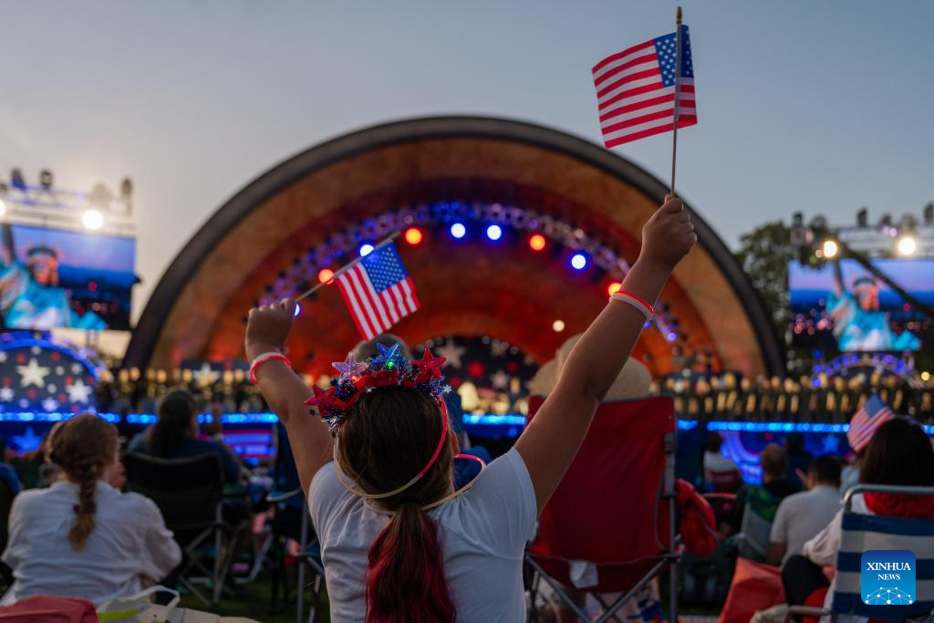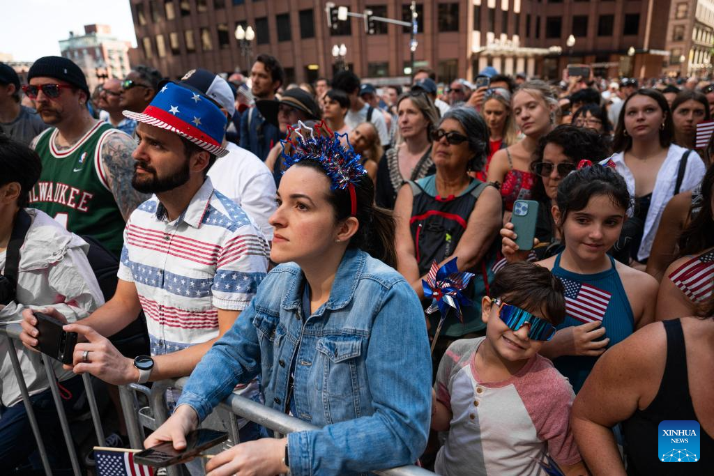 People attend a celebration marking U.S. Independence Day in Boston, Massachusetts, the United States, July 4, 2025. (Photo by Ziyu Julian Zhu/Xinhua)