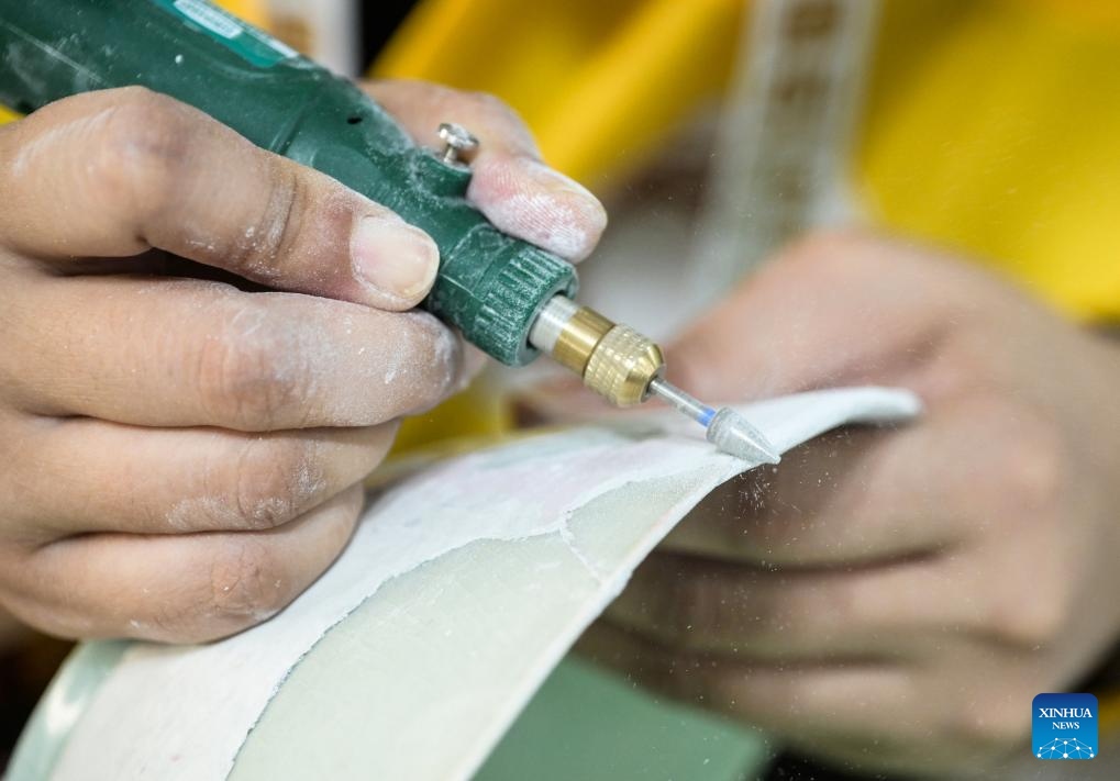 A contestant competes in ceramic relic restoration during the 2nd National Cultural Heritage Vocational Skills Competition in Luzhou City, southwest China's Sichuan Province, July 5, 2025. Starting from July 3, the four-day event attracted nearly 300 contestants competing in six categories. (Xinhua/Li He)