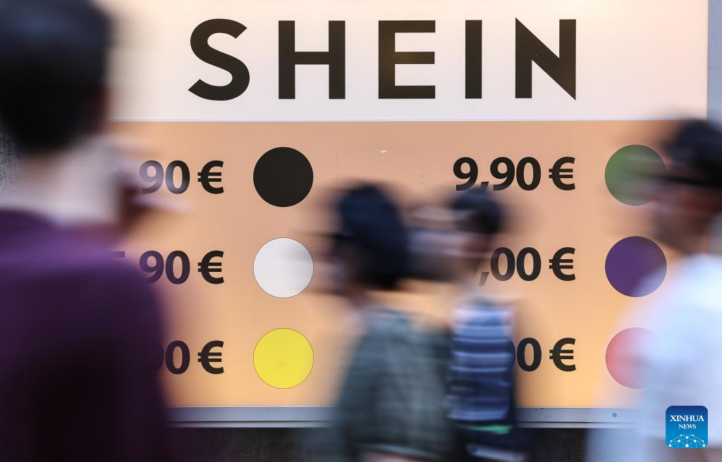 People walk past a shop window in Rome, Italy, July 5, 2025. Italy's summer sales started on Saturday, running between six and eight weeks. (Xinhua/Li Jing)