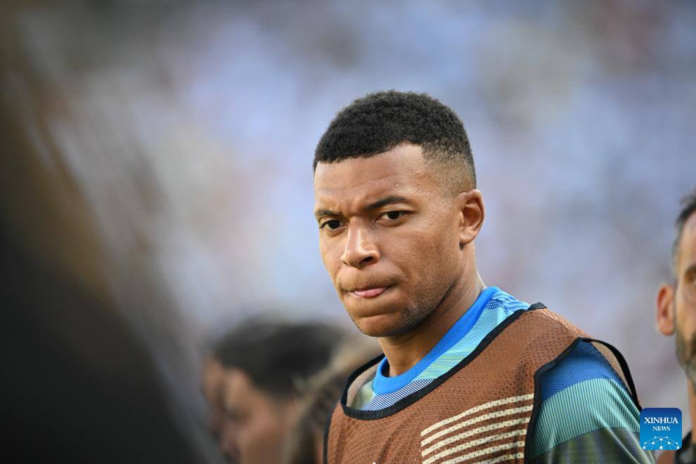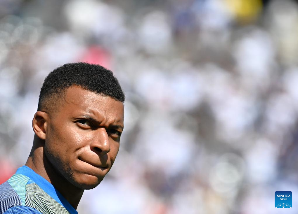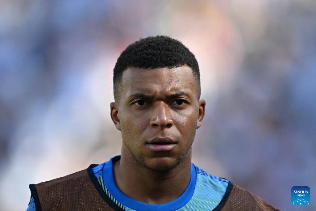 Kylian Mbappe of Real Madrid is seen during the warm-up before the quarterfinal match between Real Madrid (Spain) and Borussia Dortmund (Germany) at the FIFA Club World Cup 2025 in New Jersey, the United States, July 5, 2025. (Xinhua/Wu Xiaoling)
