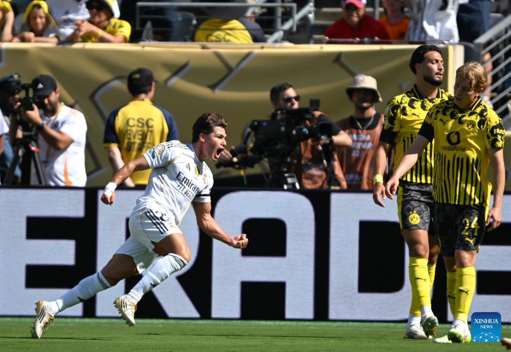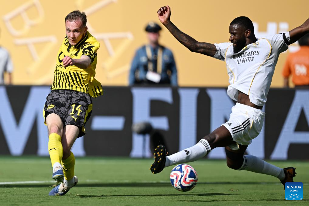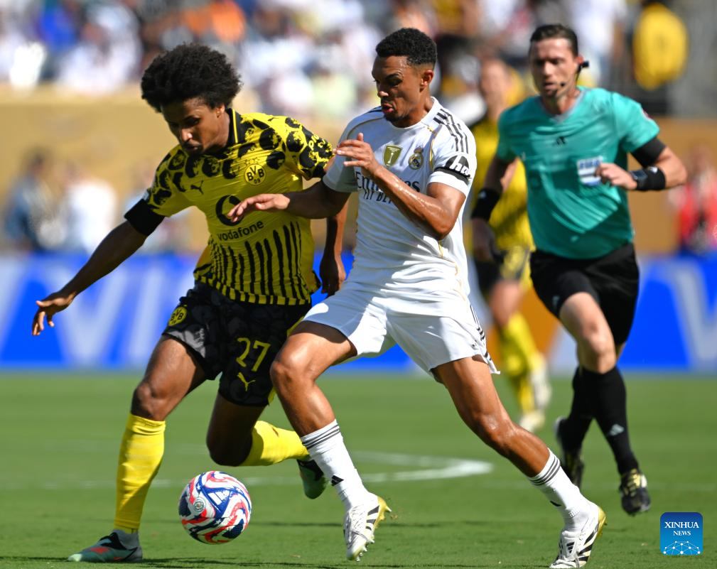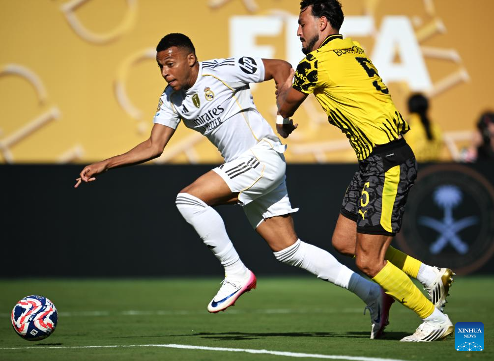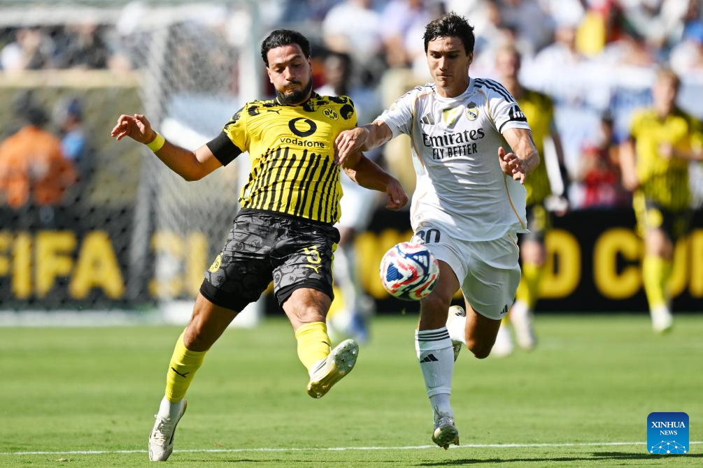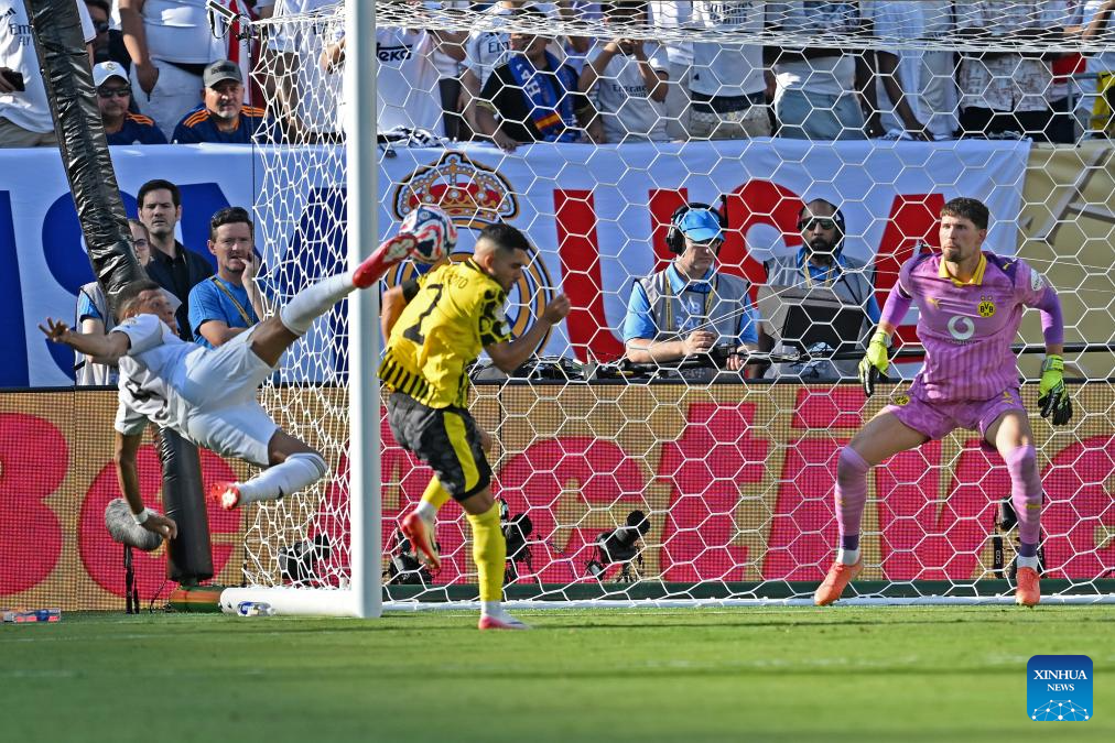 NEW YORK, July 5 (Xinhua) -- Real Madrid survived a late scare to reach the FIFA Club World Cup semifinals on Saturday with a dramatic 3-2 win over Borussia Dortmund.
