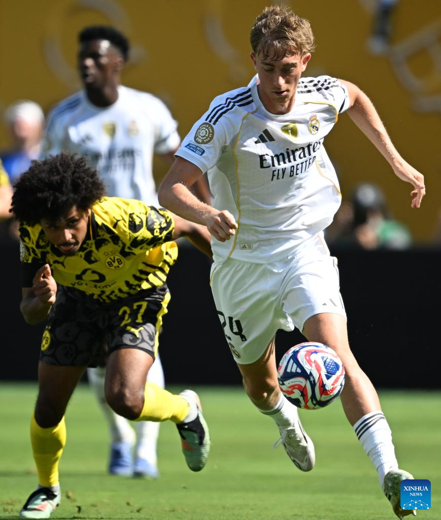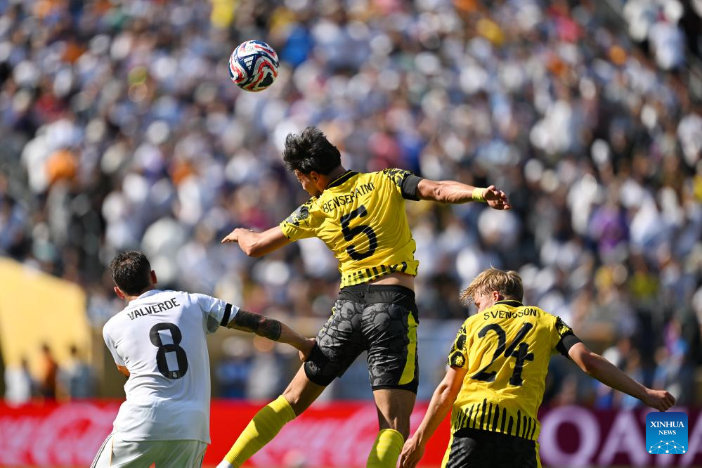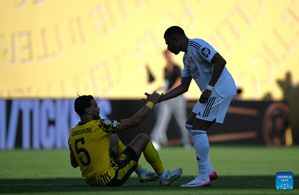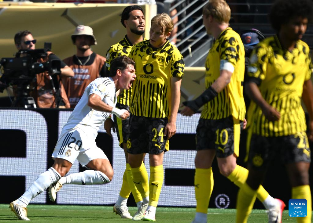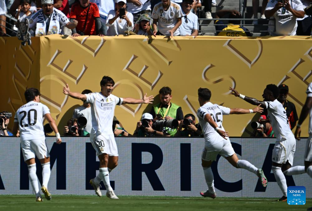 NEW YORK, July 5 (Xinhua) -- Real Madrid survived a late scare to reach the FIFA Club World Cup semifinals on Saturday with a dramatic 3-2 win over Borussia Dortmund.